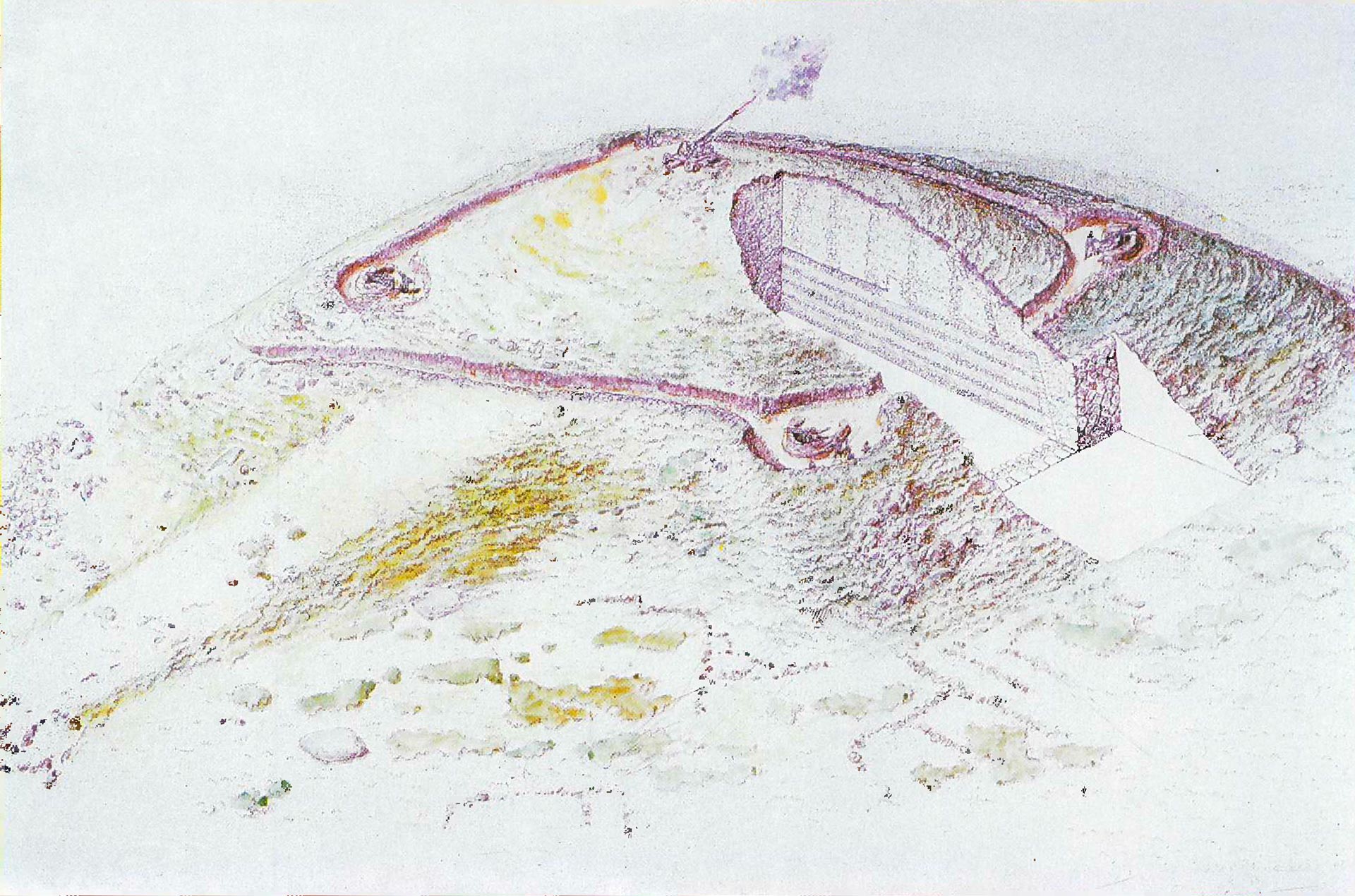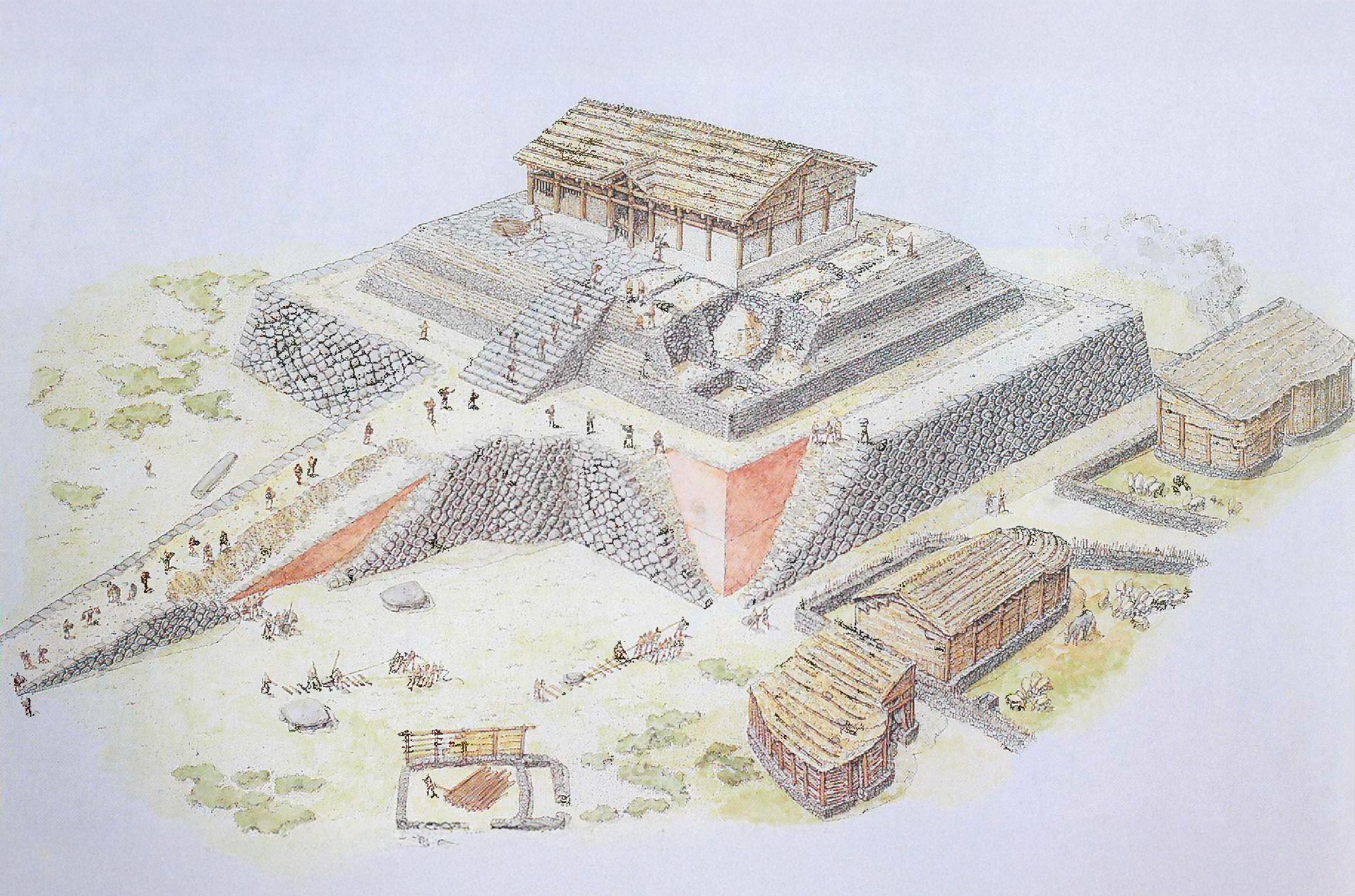 Il grande monumento trapezoidale con rampa di accesso, cuore del santuario e luogo dei principali rituali collettivi.